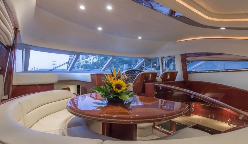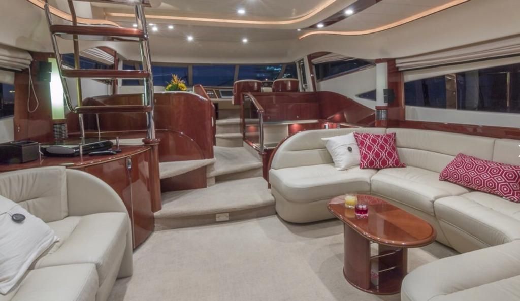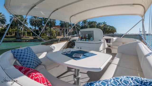 Inside the yacht, you'll discover an elegant interior adorned with modern amenities, plush lounge areas, and exquisitely appointed staterooms for you and your guests. The flybridge provides an idyllic setting for entertainment and relaxation, featuring ample seating, sunpads, and breathtaking vistas.
