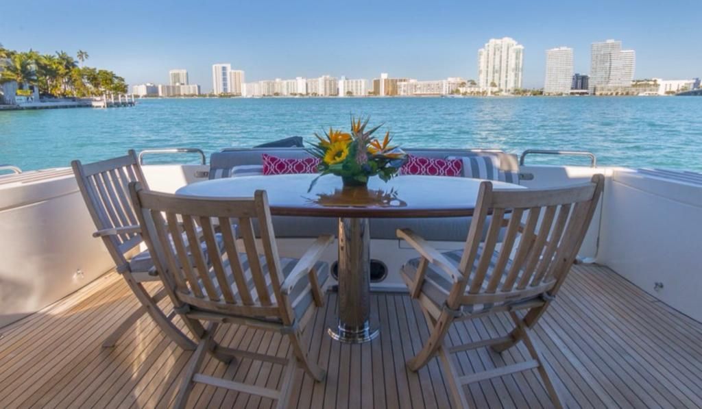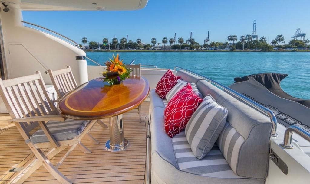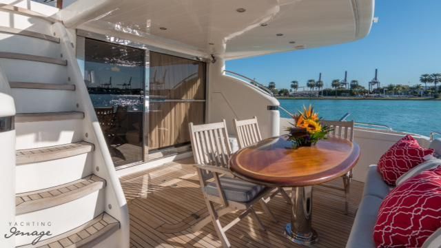Step out onto the yacht's expansive aft deck and bask in the sun and sea, complete with a wet bar, comfortable seating, and sunpad. Whether you're exploring tranquil bays or cruising the open ocean, this yacht is engineered for exceptional performance, delivering a seamless and thrilling ride.