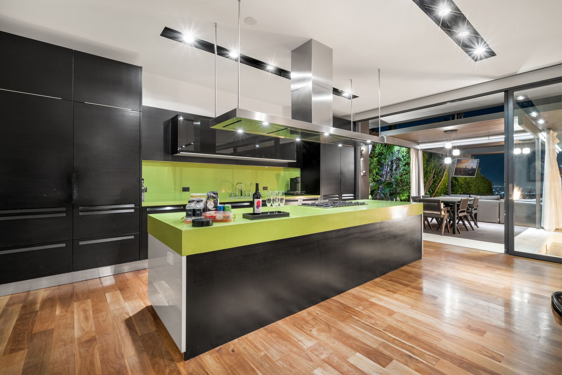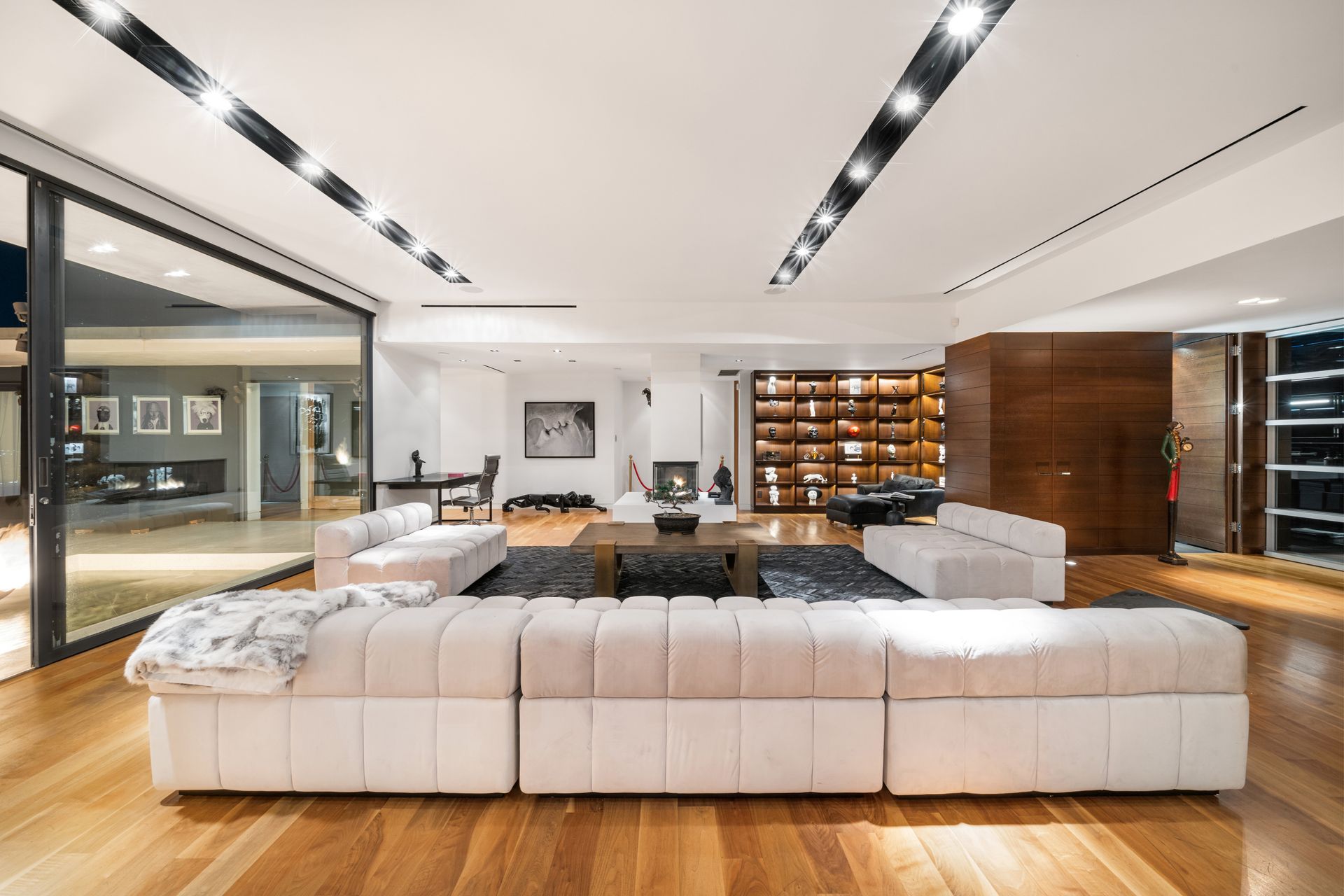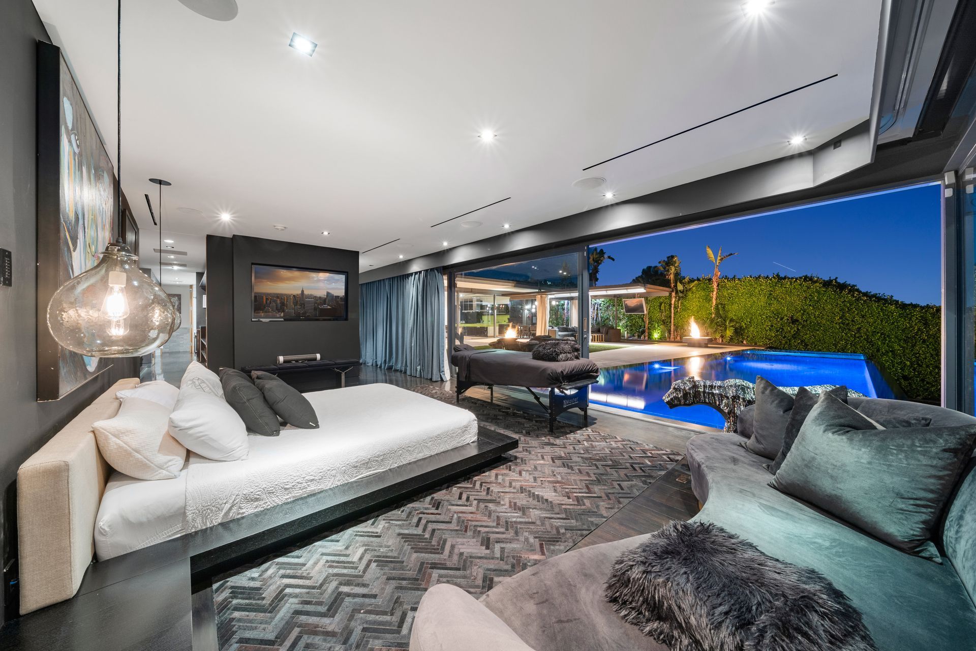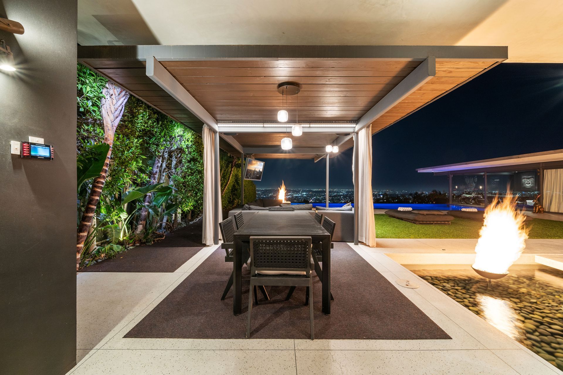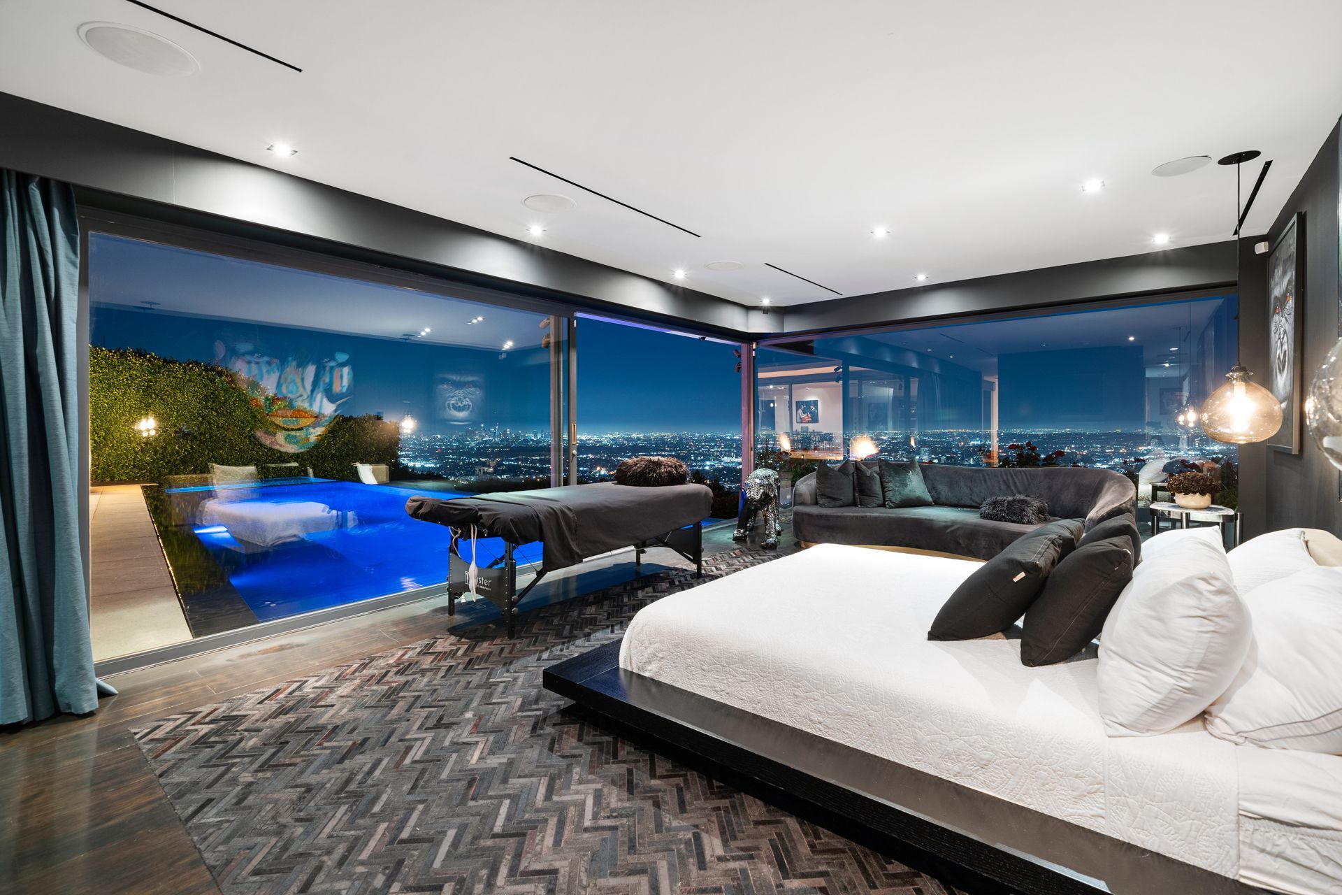 This elegant villa, located off Sunset Strip, presents unmatched architecture and stylish design. The focal point of the property is its stunning pool terrace, which boasts breathtaking city views and captivating fire pits. Additional luxurious amenities include a home theater, gym, and state-of-the-art furnishings and appliances.