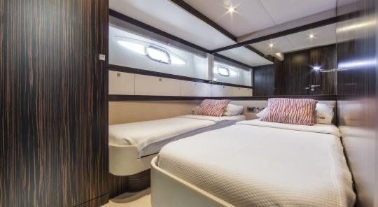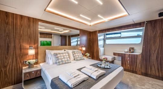 Make a bold statement and showcase your individuality with the yacht's modern and daring design. Our team of designers understands the importance of creating spaces that reflect your unique style, while ensuring maximum comfort and an inspiring aesthetic. Whether you're hosting an unforgettable gathering or seeking a private retreat, the 78' HTS yacht is the ultimate choice for an exceptional experience.