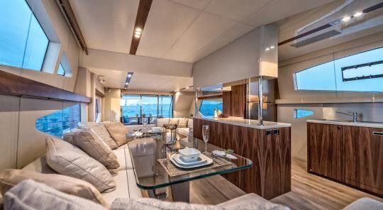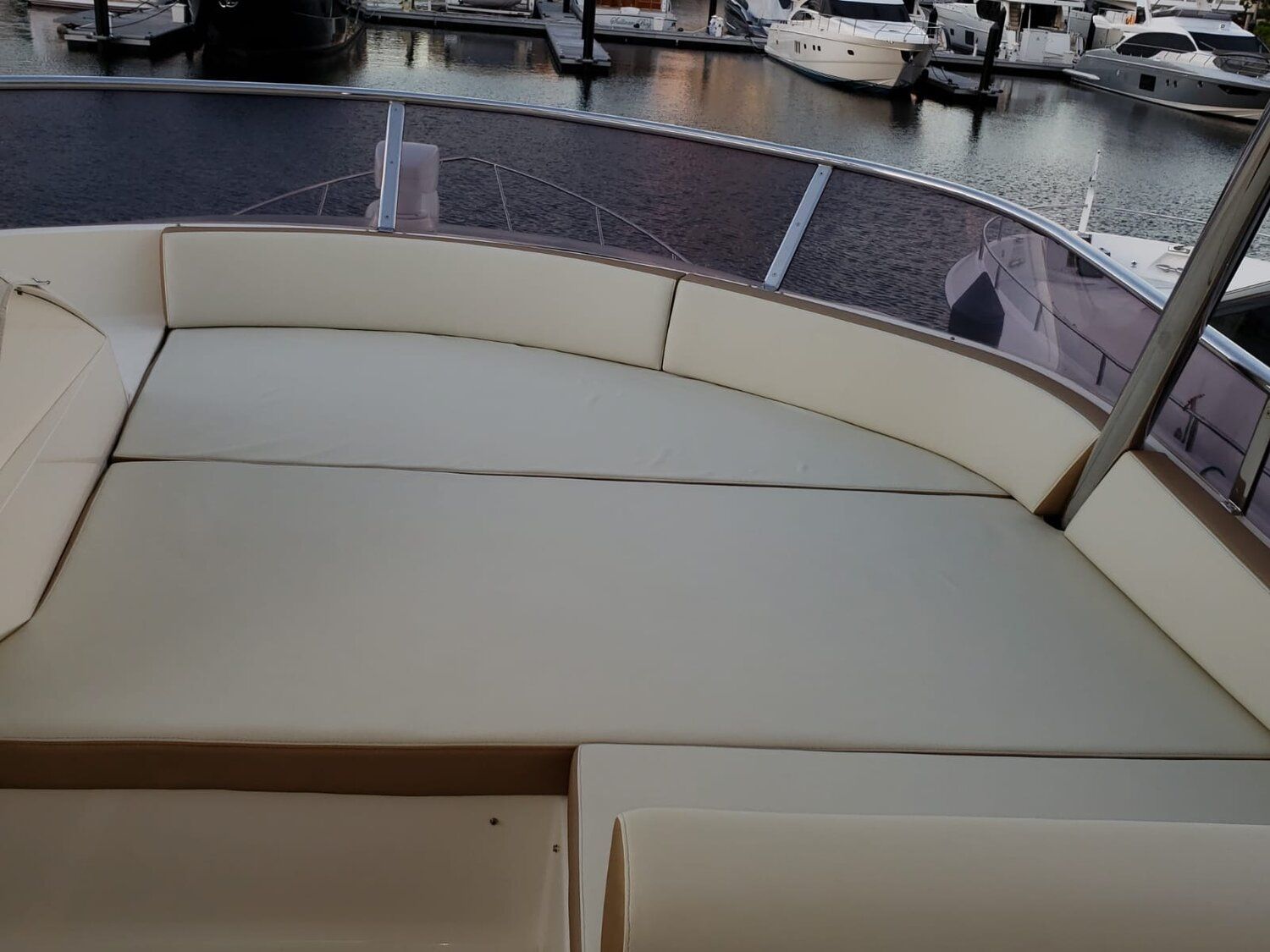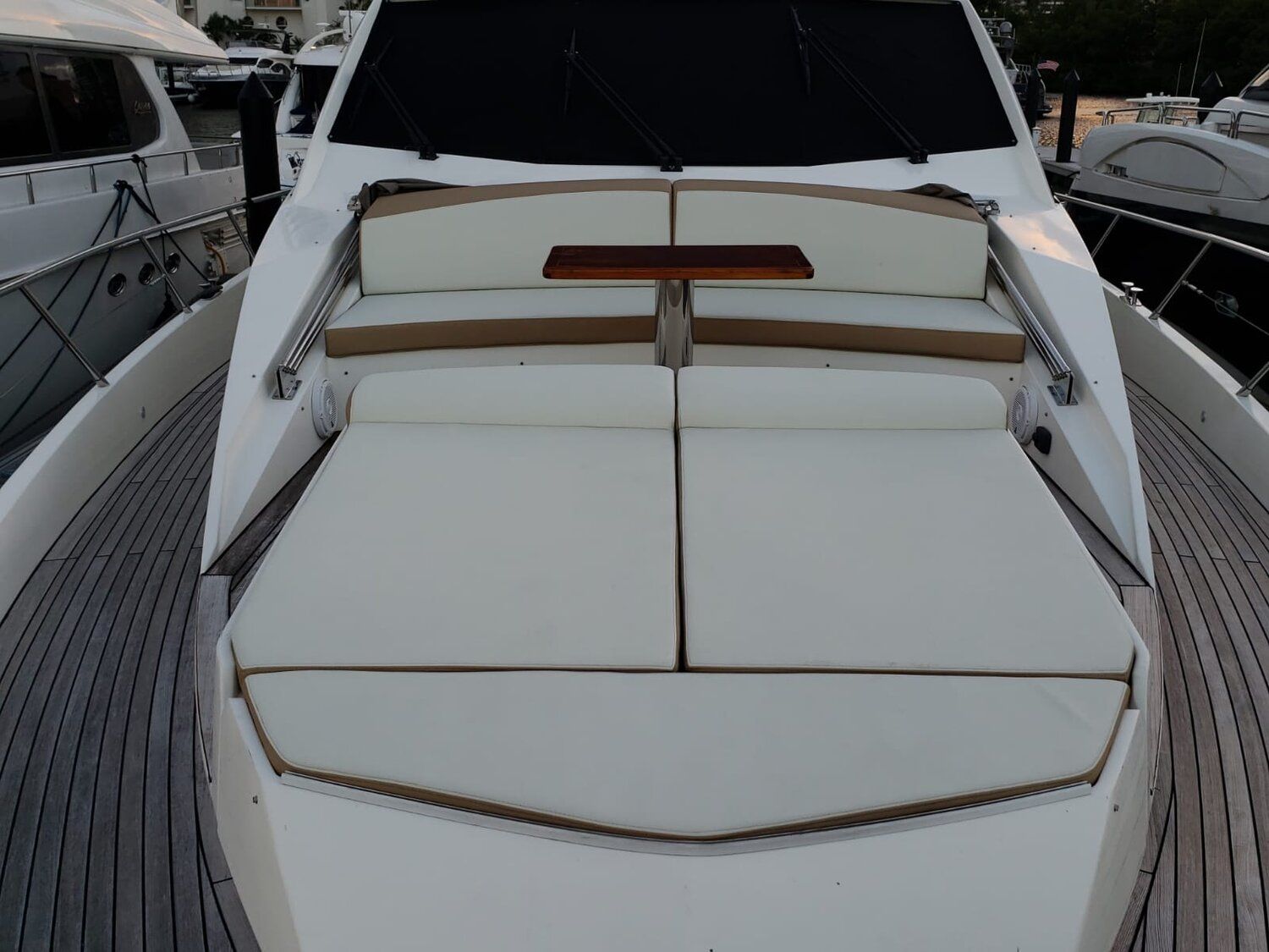Designed with relaxation in mind, this yacht features a spacious fly bridge that serves as an ideal backdrop for your cherished memories. At the front, a sun-pad configuration provides ample space for guests to bask in the sun and unwind. For the ultimate cruising experience, a forward-facing ultra-wide lounge seat offers breathtaking views, unbeatable comfort, and enhanced safety.