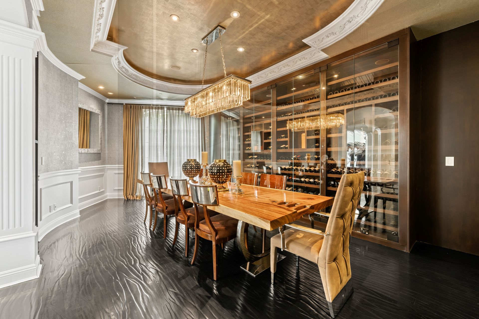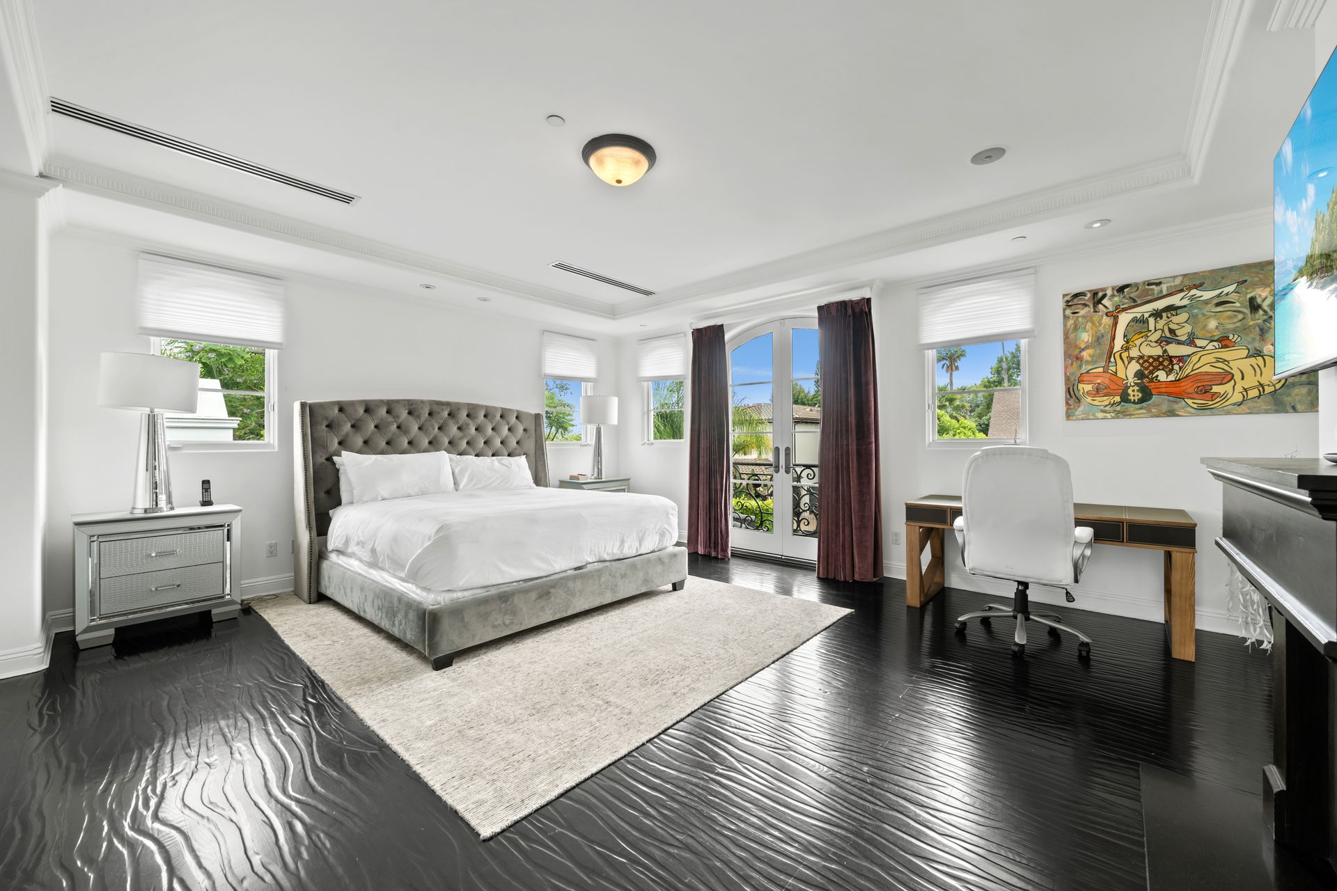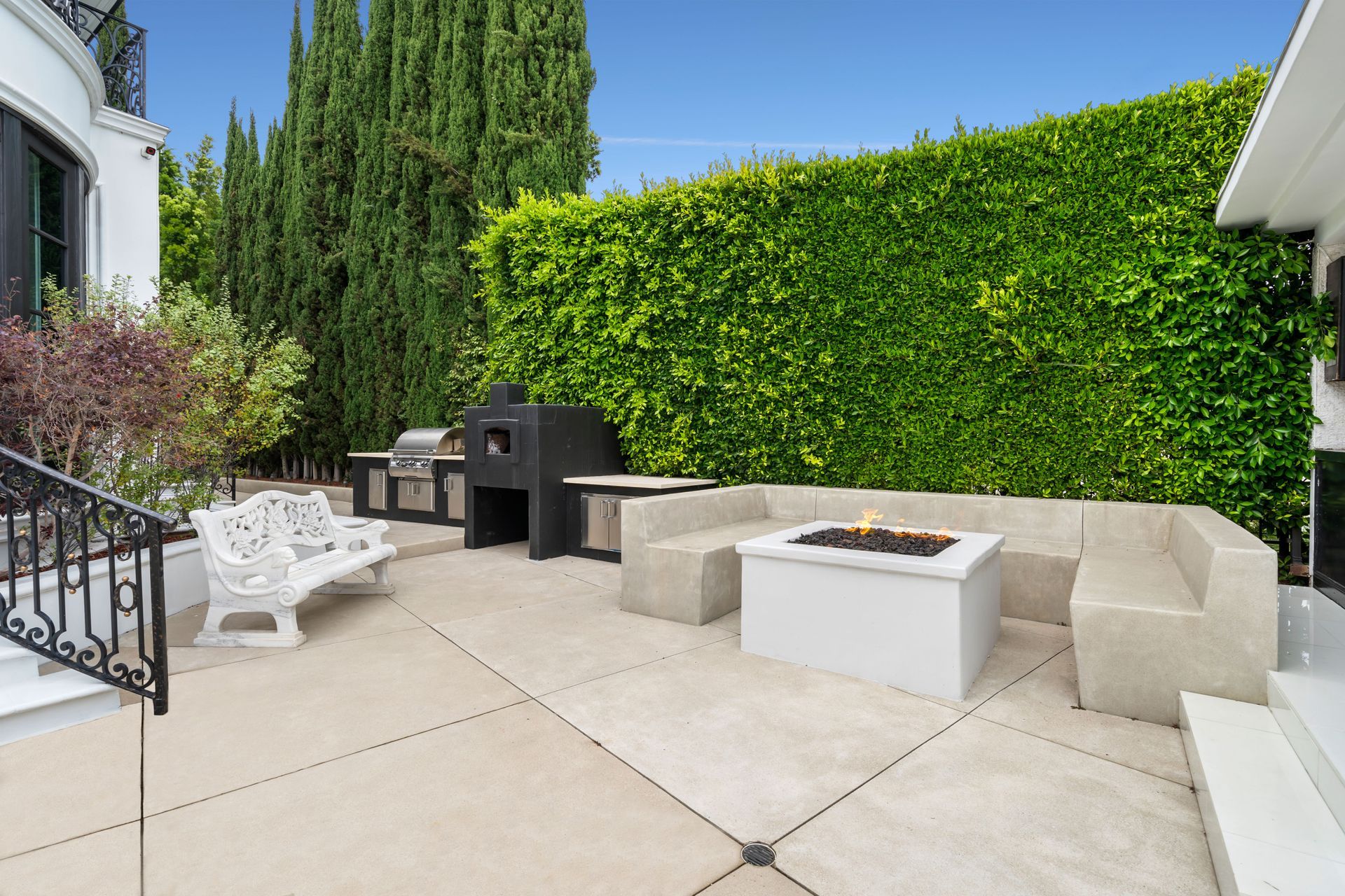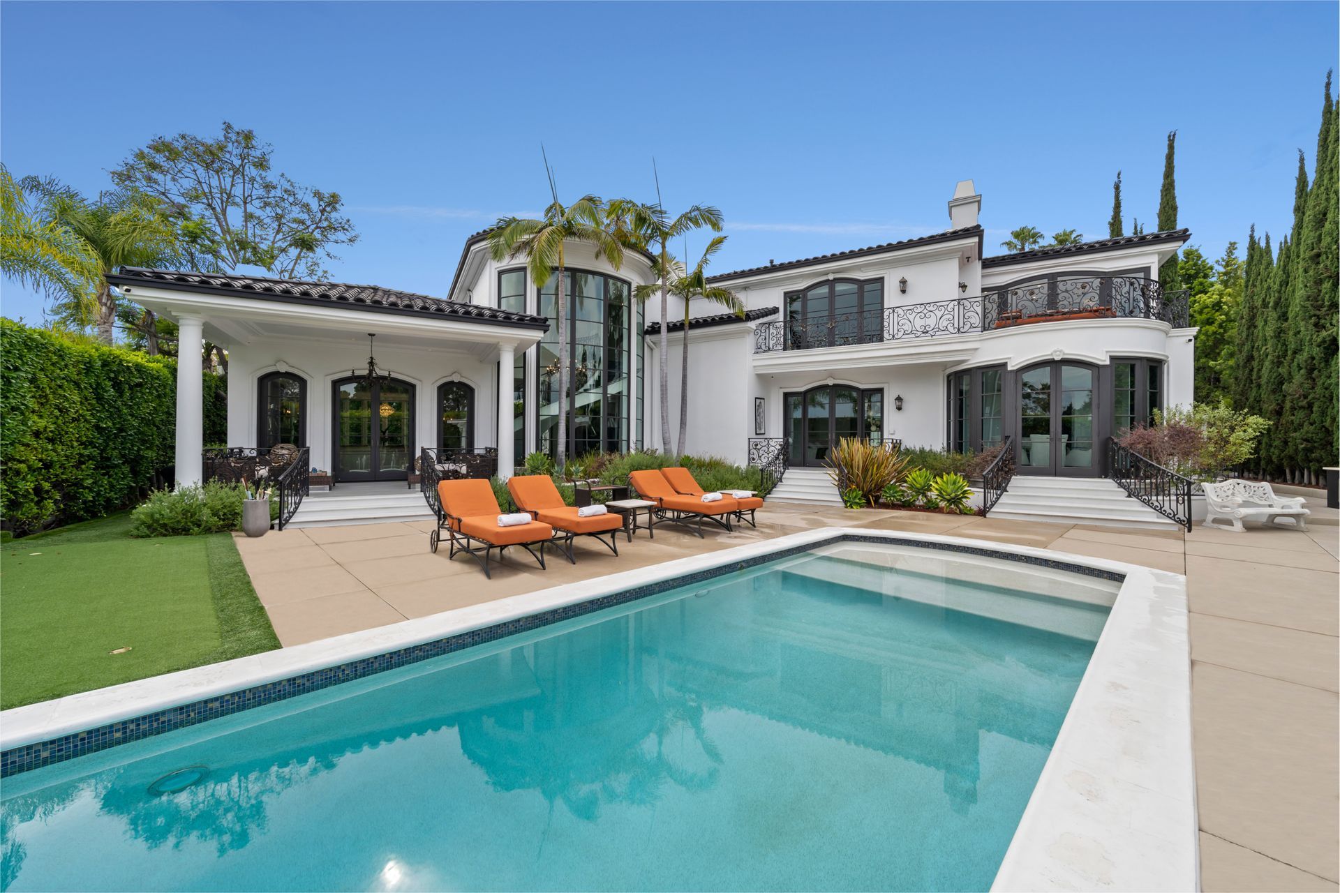 Located in Beverly Hills, this stunning Contemporary Mediterranean residence provides the ultimate experience of indoor-outdoor California living. Designed to impress, the light-filled entry boasts a magnificent two-story glass wall and a captivating serpentine staircase. Step inside this remarkable six-bedroom, seven-bathroom home and discover its exquisite features, including a formal step-down living room, a dining room accentuated by a dramatic wall-of-wine cabinet, and a newly renovated chef's kitchen. Enjoy breakfast in the glass-framed nook while taking in the breathtaking views of the grounds and pool.